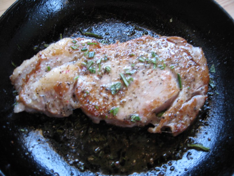 Deglaze the pan with a splash of lemon, then get your steak on the plate while it is hot.