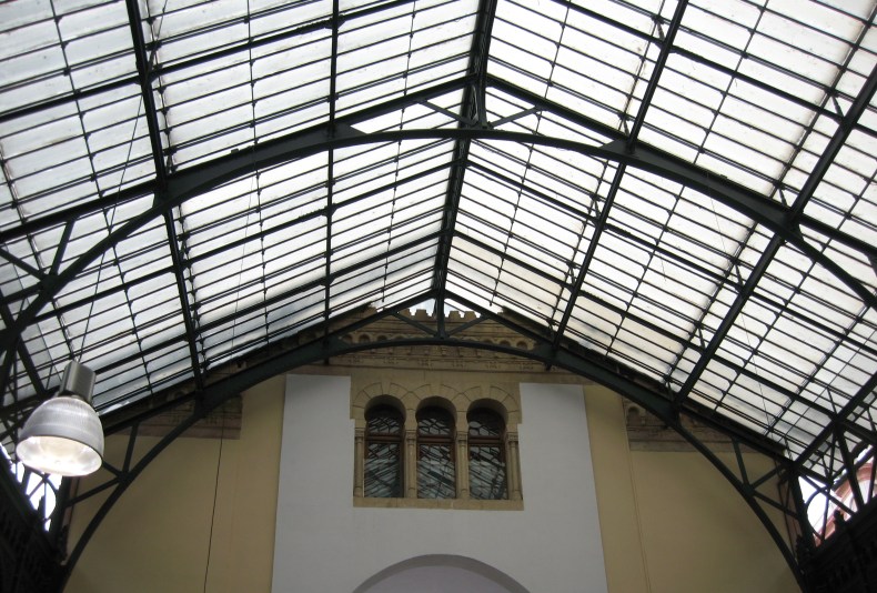 The central market in Malaga is housed in a building inspired by Les Halles in Paris, which not forgetting its arab origins is in neo moharabe style and retains one of the tenth century marble towers as well as its nazari name from when it was the Atarazanas – the shipbuilders. When I first visited Malaga the market building was still suffering from the “improvements” done in the sixties, which included a mezzanine floor which cut out the natural light and made the hall feel dingy and sliced in half the stained glass window that fills one end of the central hall. Thankfully the former glory has been returned to.malaga_market_window