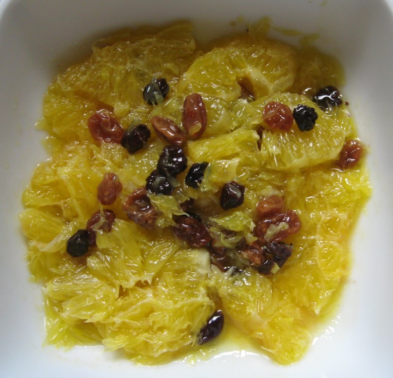 The sweet and sour flavour of nearly ripe oranges and the fruity acidity of the new freshly pressed olive oil go together so well. One of the simplest orange salads that I have been served was in Merida while on honeymoon. Oranges lightly salted and soaked in olive oil for an hour or two, then garnished with tiny black currants. It was served as an amuse bouche.
