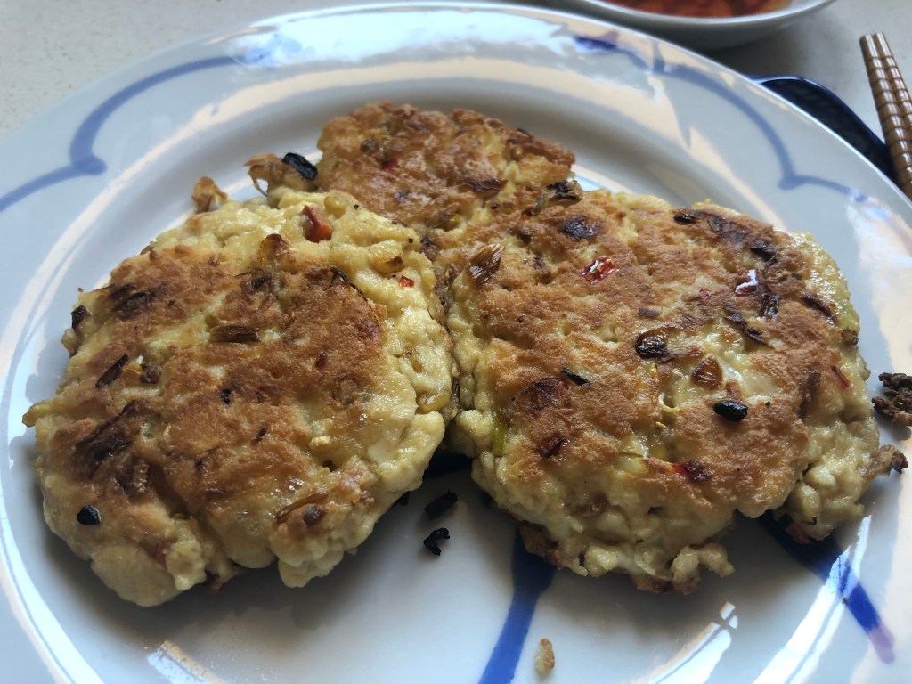 Heat oil in a frying pan and add cakes. Cook on a low heat. The cakes are quite delicate so you only want to turn them once, so let the first side get nicely golden brown and crispy before gently turning them over.
