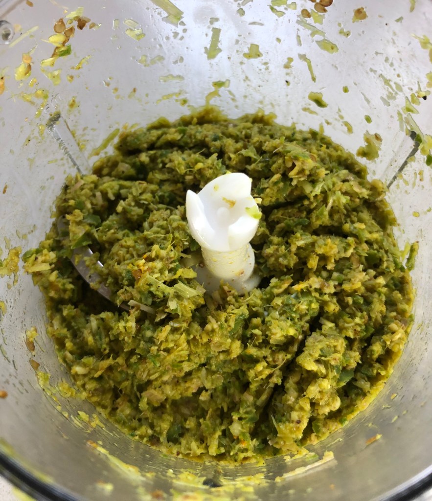 Once the potatoes are cooked pour off any excess cooking liquid into the soup. Mash the potato mix. Add the crushed hazelnuts and mix in.