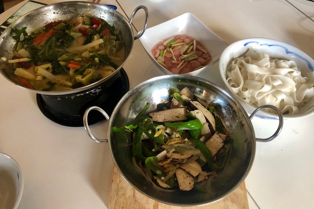 The original version was made with a meat stock, and the mash thickener had finely chopped ham in it and maybe some fried onions as well. The additions to the mash can be changed depending on what you have in your cupboard, just fried onions and or garlic would work well, finely chopped fried peppers too.