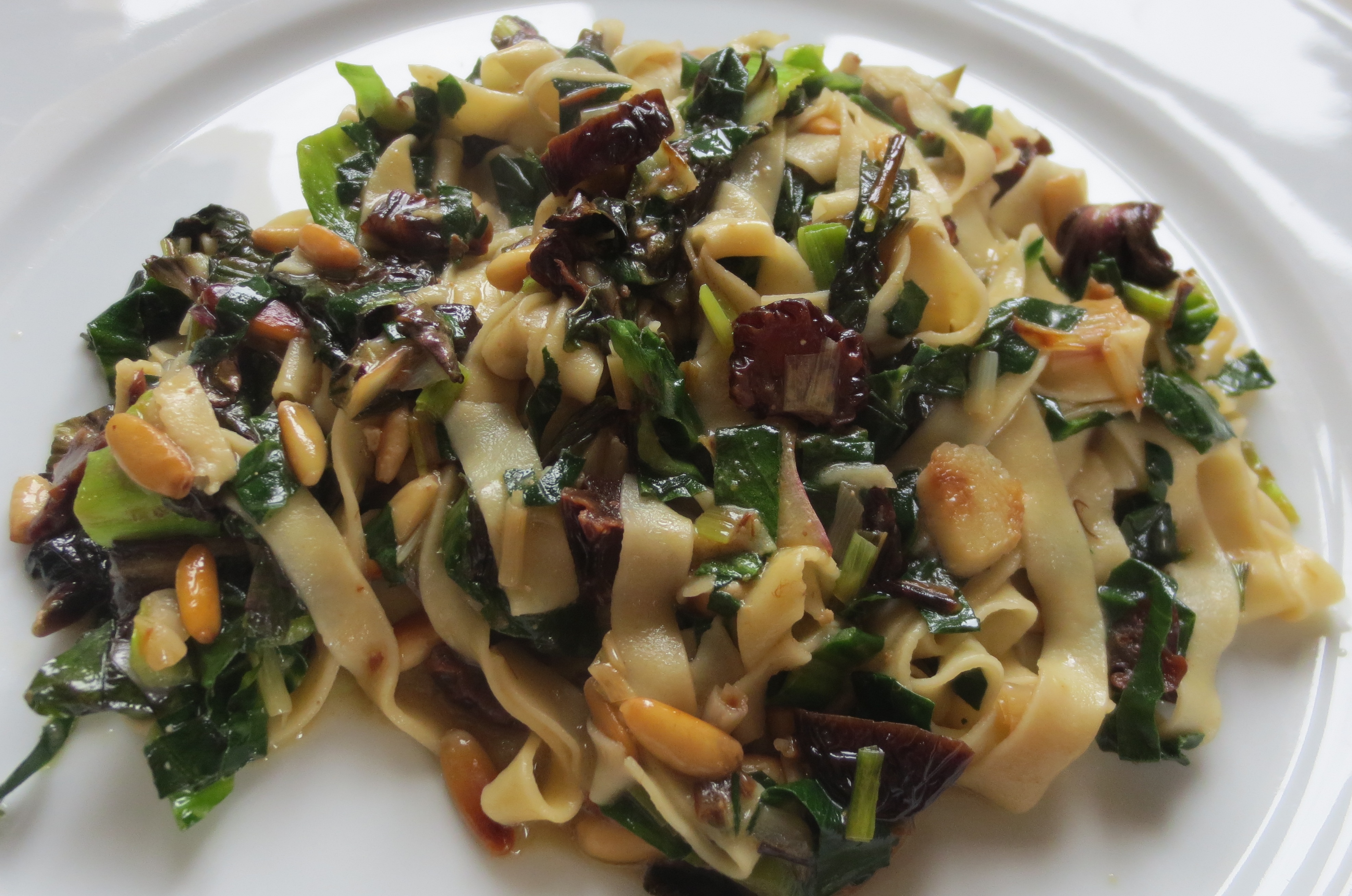 TAGLIATELLE WITH CHICORY, PINE NUTS AND RAISINS