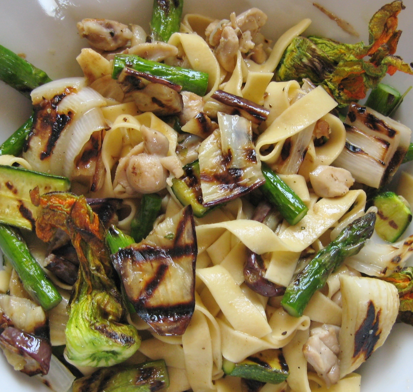 Tagliatelle with Grilled Spring Vegetables and Rabbit