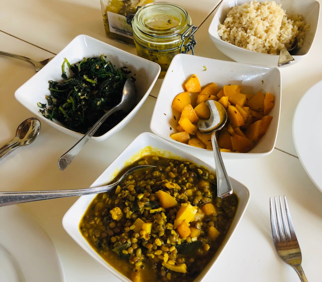 Oh and if you were wondering what the little green seeds are decorating the lentils, they are fresh green coriander seeds as my coriander in the veg patch is now going to seed with the warmer temperatures. I can leave the seeds to go brown and dry, but I love the flavour of them, pungent and sweet, so a collect them green, and either use them fresh or freeze them. Enjoy!