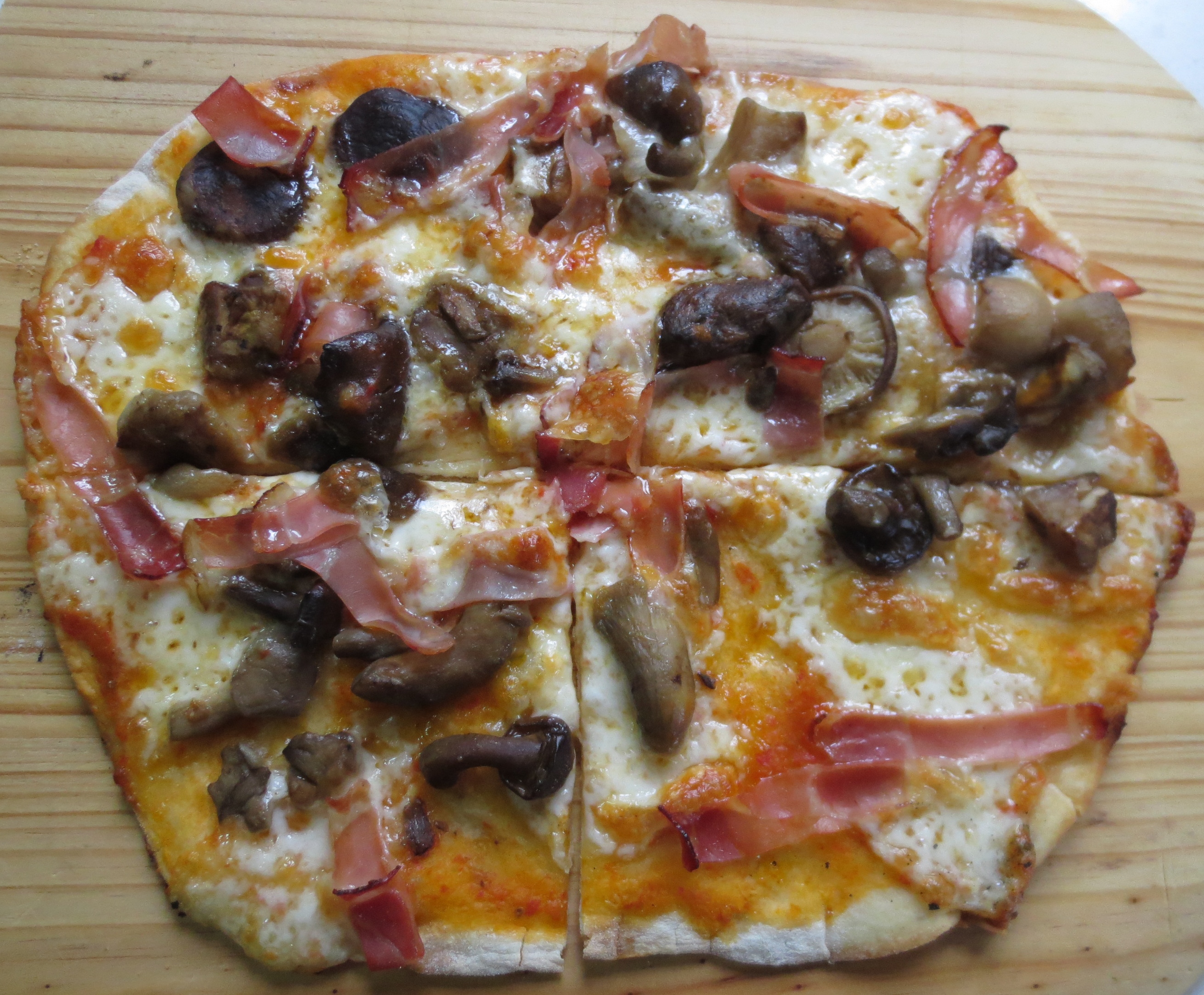 A new favourite since the visit to Naples is smoked mozerella and chilli. Here with Parma ham and mushrooms.
