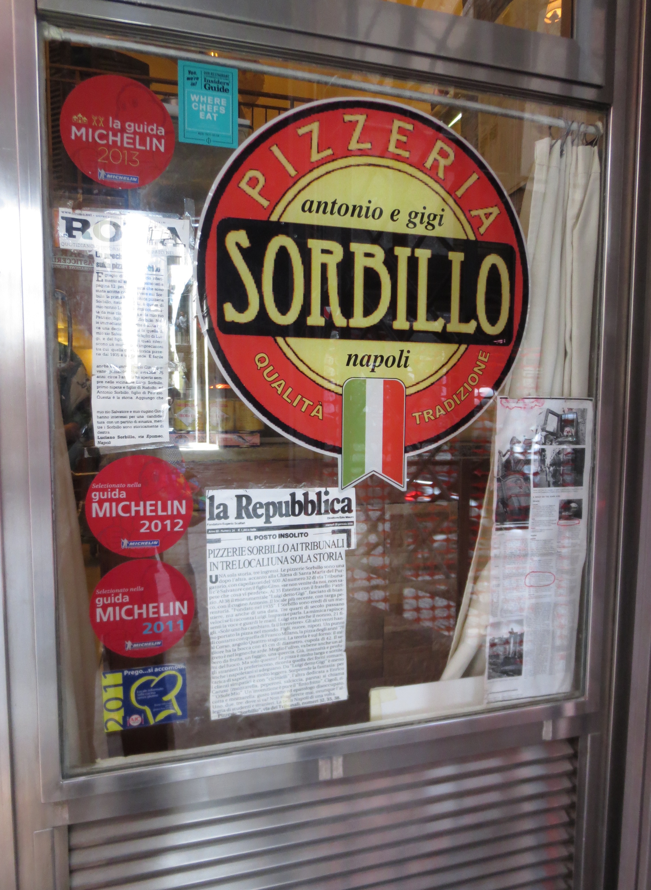 IMG_0199Are there any others you may ask? Naples being the home of the pizza, on a recent visit I just had to search out a restaurant preparing the authentic item. With the help of http://www.napoliunplugged.com I found the perfect place right in the centre of the city. Restaurante Sorbillo is not much more than a cafe with a wood burning oven.